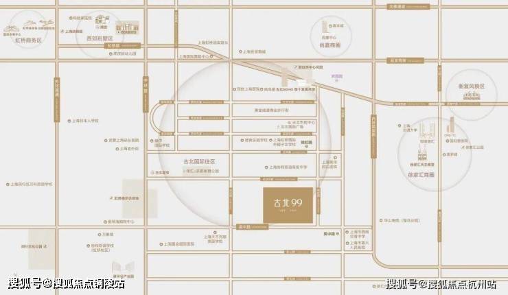1-1.5公里步行圈:古北1699广场、黄金城道步行街、高岛屋、古北市民中心、体汇+名都体育公园、虹桥高尔夫球场、古北SOHO、程十发美术馆;2.5-3.5公里生活/商务圈:尚嘉中心、南丰城、老外街、世贸商城、徐家汇恒隆、新鸿基ITC、爱琴海购物中心、万象城、仙霞网球中心、西郊宾馆、虹桥迎宾馆、漕河泾开发区;