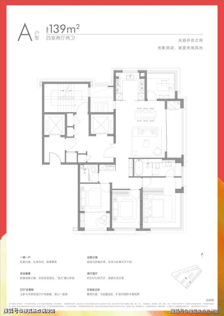 项目首推建面约117-139㎡3-4房,你想要的“类独立电梯厅”、“双阳台高实得率”、“大面宽”、“270°灵动飘窗”等应有尽有。