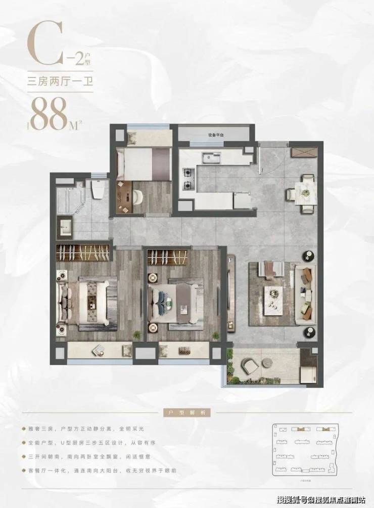 【安联虹悦官方售楼处咨询热线】400-8855-420(24小时服务,人工客服8:00-22:00)项目所在地块三面环水,带来半岛式的社区格局,缔造城市中难得的水岸生活。项目总建筑面积约12.5万方,总规划8栋14F和3栋16F小高层,涵盖建筑面积型分别为88/95㎡的三房两厅一卫、99㎡的三房两厅两卫和133㎡的四房两厅两卫“全龄全时成长型”户型。通过凝萃全球都会高端美学共识,以大幅面钻幕美学立面,打造韵律感建筑,筑起水岸轻奢生活。将优雅写意融入生活,打造大虹桥品质人居社区,为城市铺就一方美好栖居,实现人与人、人与自然、建筑与自然的交融共生!