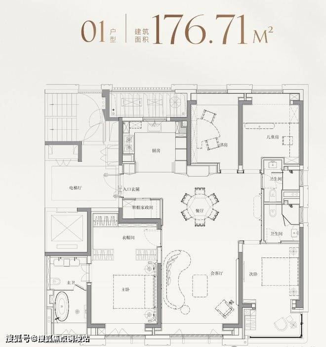 而建面约177㎡01室,则针对性地打造为4房格局,精准契合二胎家庭或三代同堂需求。