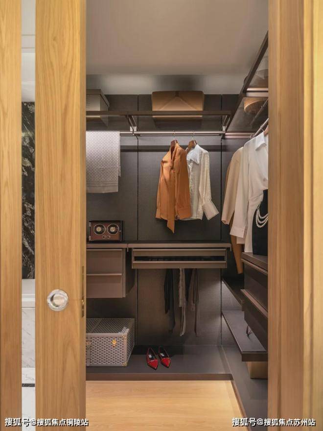 虹口天潼里198售楼处电话/地址:400-8787-740✔✔✔(预约热线)步入式衣帽间隐于卫浴内部,创造出一体化体验,金属质感的柜体材质,与卫浴石材形成对比,增加了视觉的丰富性。