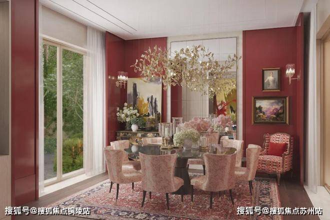 虹口天潼里198售楼处电话/地址:400-8787-740✔✔✔(预约热线)餐桌上盛放的热带花卉与橘色亚麻帆布面壁纸,一同传递出热烈的情感,一幅展现自然风光的画作《The Old Walnut Tree B》丰富了空间的色调,在贵雅的氛围中妆点质朴与原始的美。