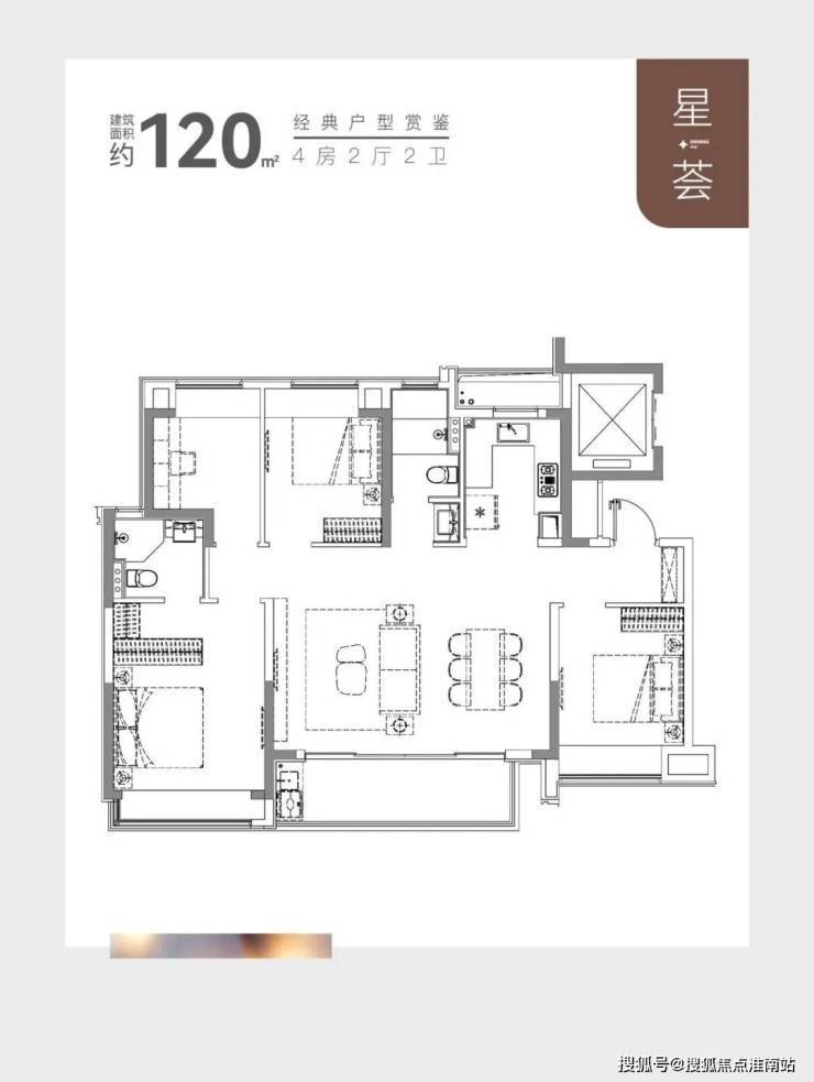 建面约120㎡的产品,市面上大多都是3房,但大华星曜做了4房的设计,实用性非常出色。