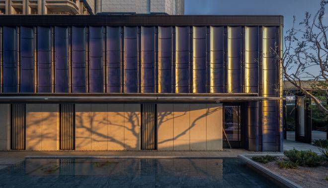 比如,流光幻彩的艺术铝板立面。