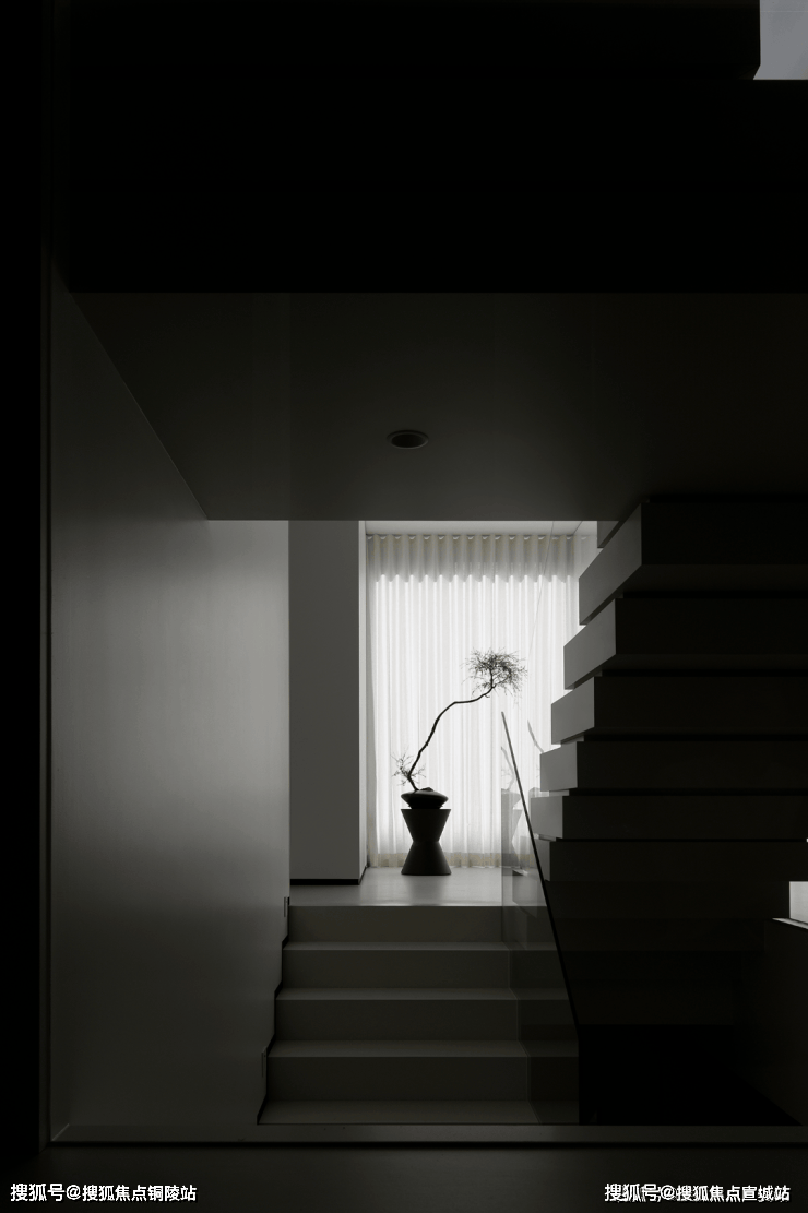 楼梯区完全被几何占据,自然光恰到好处的平衡,进一步呼应着空间的心境,衔接了生活和居所。