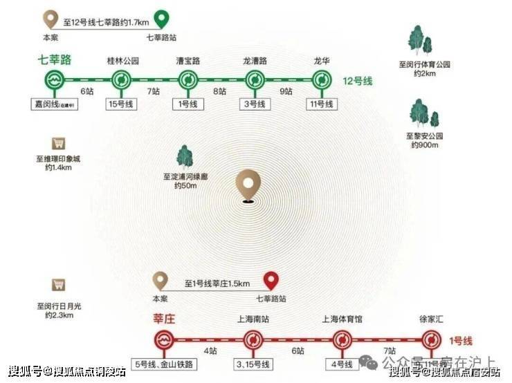 商业方面,离项目最近的商业是12号线七莘路站地铁上盖综合体维璟印象城,直线距离仅相距约1.4公里