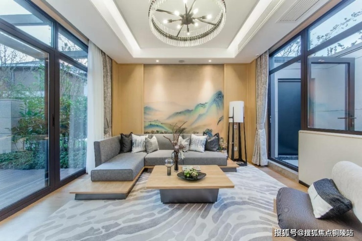 约8.8米南向大面宽,三卧室全部朝南,动静分区明显,户型方正,使用性高,以中国元素,江南韵味,海岛特色为基础,多重院落分割,四面皆有院落,室内外皆有院落,还有地下空间和超大露台的自由使用面积,既有私密性,又有家庭氛围。