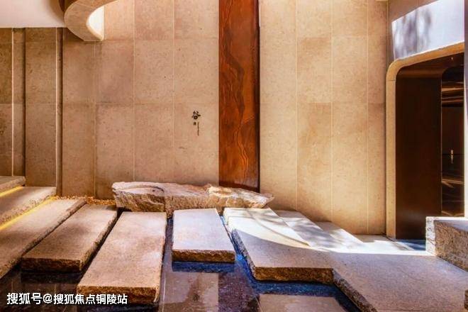 越秀·外滩樾的会所在地下三层。他们在会所中做了造型各异的奢石景墙,用各种隐约可见,来分隔和连接不同的功能空间。