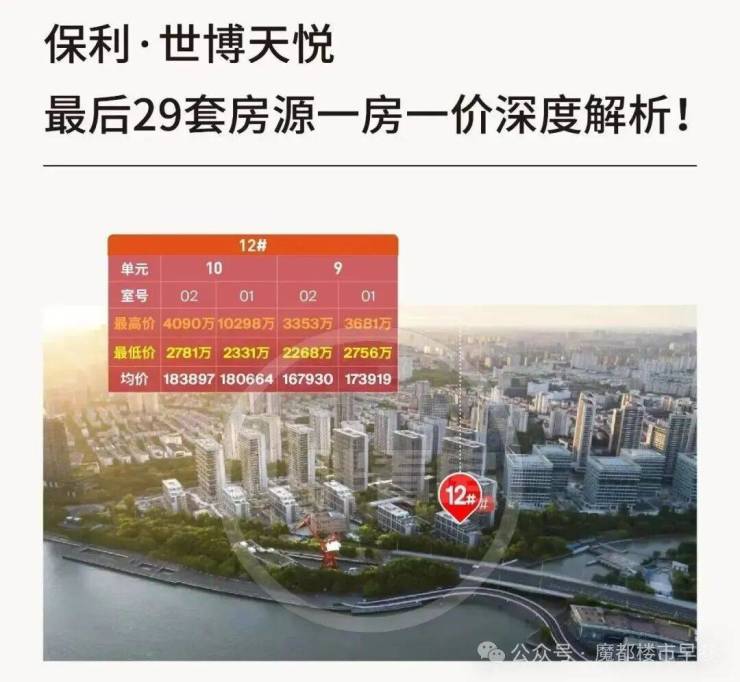 黄浦江核芯段「保利世博天悦」4.17认购,加推11#,即离江最近的一幢双面瞰江楼栋,建面191-207三四居楼王,仅60套,均价约18.34万/㎡。