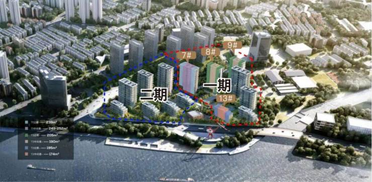 如下图所示,项目分两期开发,一期将分两次推盘,首推7#、8#9#13#4栋楼共291套房源;二批次加推5幢和10幢:5幢是190户型和205户型、10幢是240户型和252户型。房源共172套,均价16.8万/㎡。