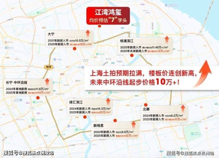 再来看中环沿线新房价格当前的格局。规划强势的如徐汇长桥,三林滨江,静安大宁,杨浦滨江等,价格全面突破11万+/㎡。