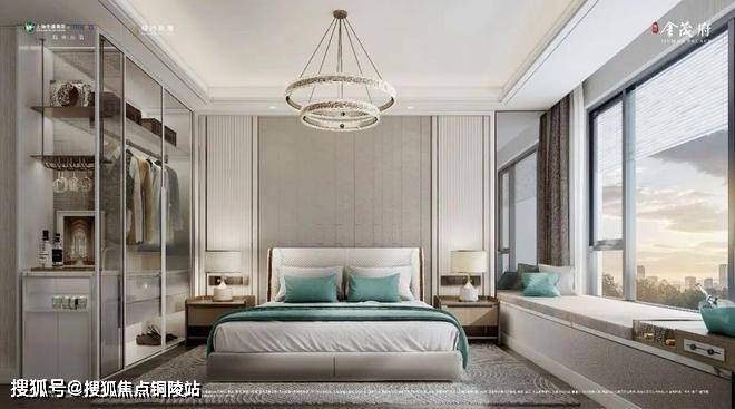 主卧套房设计,隐私性较好,飘窗设计更有效延申室内空间,也可以作为休闲区域使用,收纳空间设计的也比较充足,切实考虑年轻人买买买的购物习惯。
