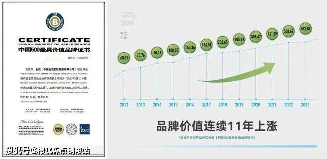 自2005年以来,金茂已经连续19年入围“中国500最具价值品牌”榜,2023年更是以582.09亿元的品牌价值位列第174名。(数据来源于金茂官网)