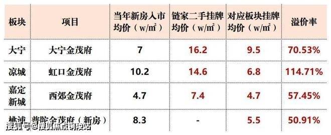 据贝壳数据统计,金茂府与同板块二手房相比,挂牌均价比板块均价高出50%以上,最高溢价甚至突破114.71%!