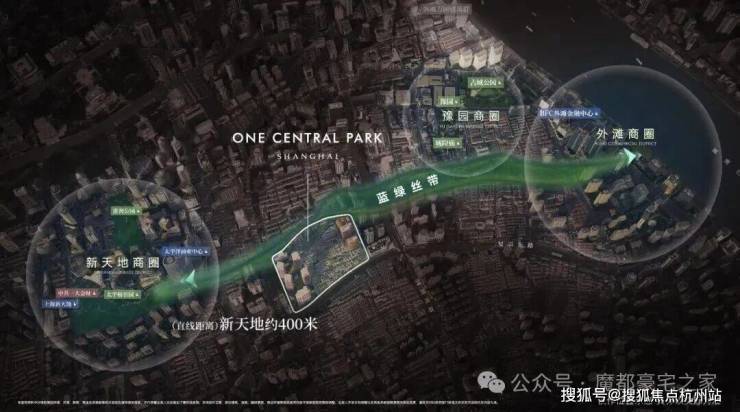 距离新天地直线距离约400米,作为蓝绿丝带规划上的关键节点,随着大新天地东进南拓战略逐步实施,通过水景、绿地和公共空间,串联新天地、豫园、外滩三大世界级商业版图。