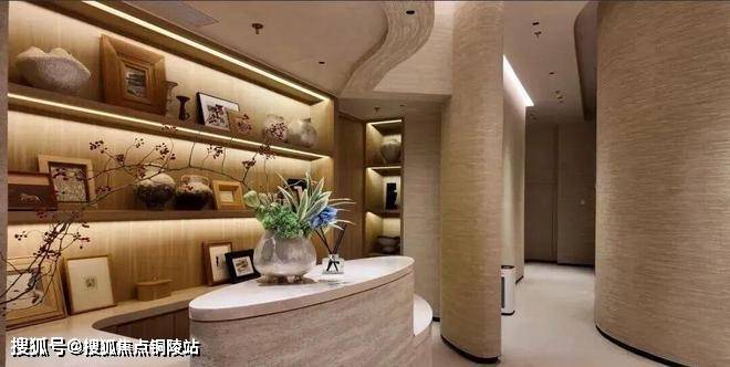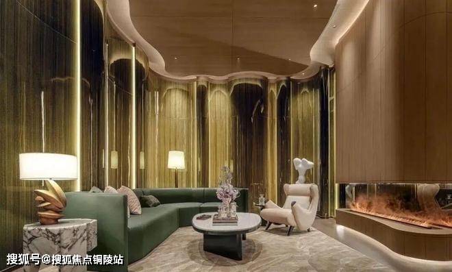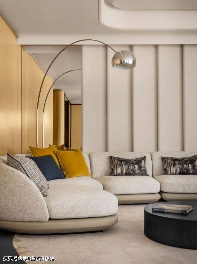 客厅空间采用大量造价昂贵的弧面设计,带来更有格调的审美价值: