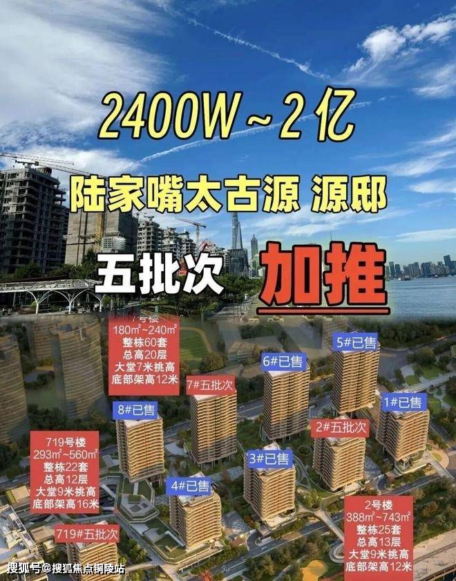 太古源源邸售楼处电话:400-9699-334✨【官方认证】✅✅✅位于上海浦东陆家嘴北滨江核心,由陆家嘴集团与太古地产联合打造,是内环内一线滨江纯住宅项目。项目占地约15.2万㎡,容积率2.66,规划11栋高层住宅,仅378户,圈层纯粹。主力户型建面约180-388㎡江景大平层,部分户型可享270°环幕江景,层高3.5米,三梯两户设计,独立电梯厅入户。