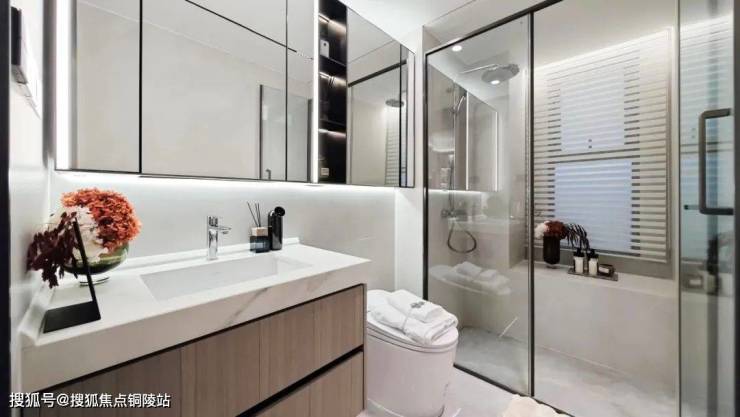 一般而言,主卫和次卫能拥有窗户达到全明采光已经称得上优秀了,而这套户型的两个卫生间均都有飘窗,丰富更多收纳可能性。