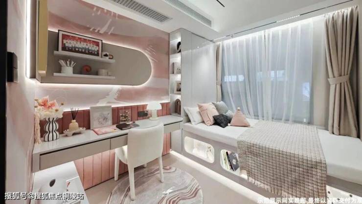 值得一提的是,市面上大部分100㎡横厅户型多少会牺牲北向房间的尺度。而项目北向房间面宽约2.8米,搭配飘窗的设计,完全可以满足卧室的功能使用。