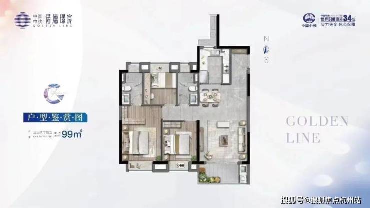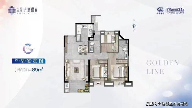 中铁诺德•璟宸有三种户型:约89平的三房两卫,约99平的三房两卫,和约129平的四房两卫。