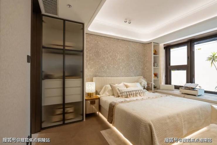 豪华的套房设计,北侧卫浴飘窗+南向床边双飘窗的设计,更是把这个空间的视野和收纳空间延展开来,尺度感真的很惊人。