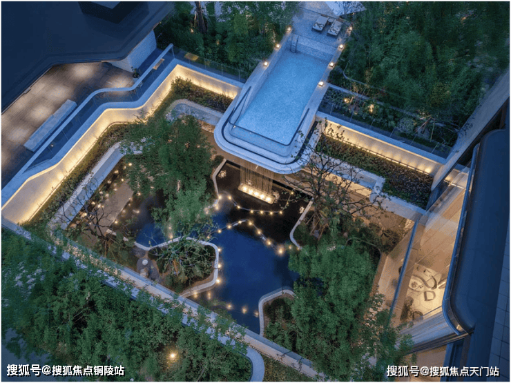 灵感源自新加坡edtion度假酒店的悬挑式戏水池,搭配4.3米飞瀑,创造别具一格的城市绿意的立体浮岛视觉奇观。