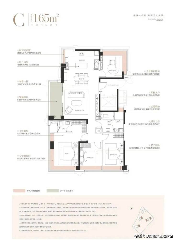 因此,外滩瑞府在建面约165㎡户型中创新推出三四房灵活定制体系。