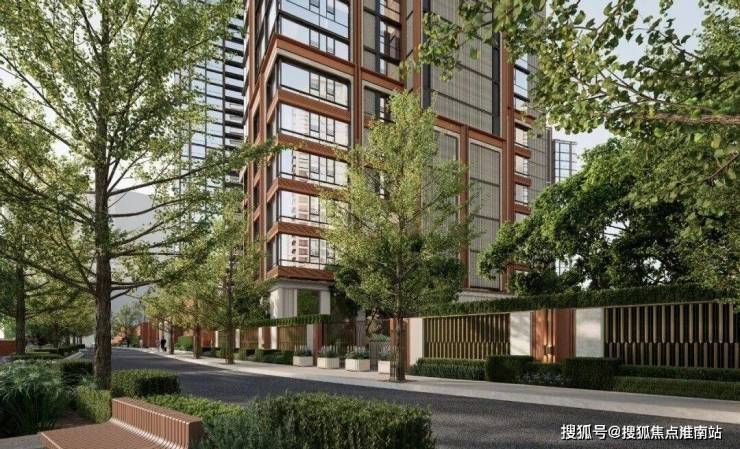社区景观上,突破市区项目常见的「兵列树阵式」布局,通过建筑楼体的精密偏转,形成罕见的围合式社区形态。