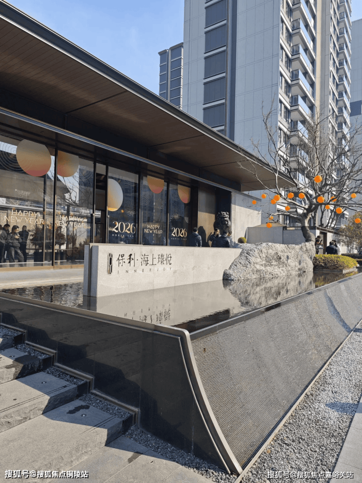 产品打造上,保利海上瑧悦作为保利瑧悦系作品,传承海派文化与东方美学,采用现代简约立面风格,区别于传统中式设计,打造面向未来的东方主义生活方式。项目规划13栋17-26层高层住宅,容积率约2.6,限高80米,全装修交付,总户数不少于1400套,配建5%以上保障性住房,中小套户型占比不低于70%。社区景观极具匠心,打造“一园三堂五进”的东方庭园,借鉴上海张园造景手法,融入近1000平灵活水系,涵盖静水、跌水、瀑布等五种水景形态。