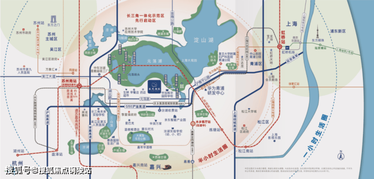 高速路网:紧邻G50沪渝高速,入口直线距离约1公里,车行40分钟直达上海虹桥枢纽。