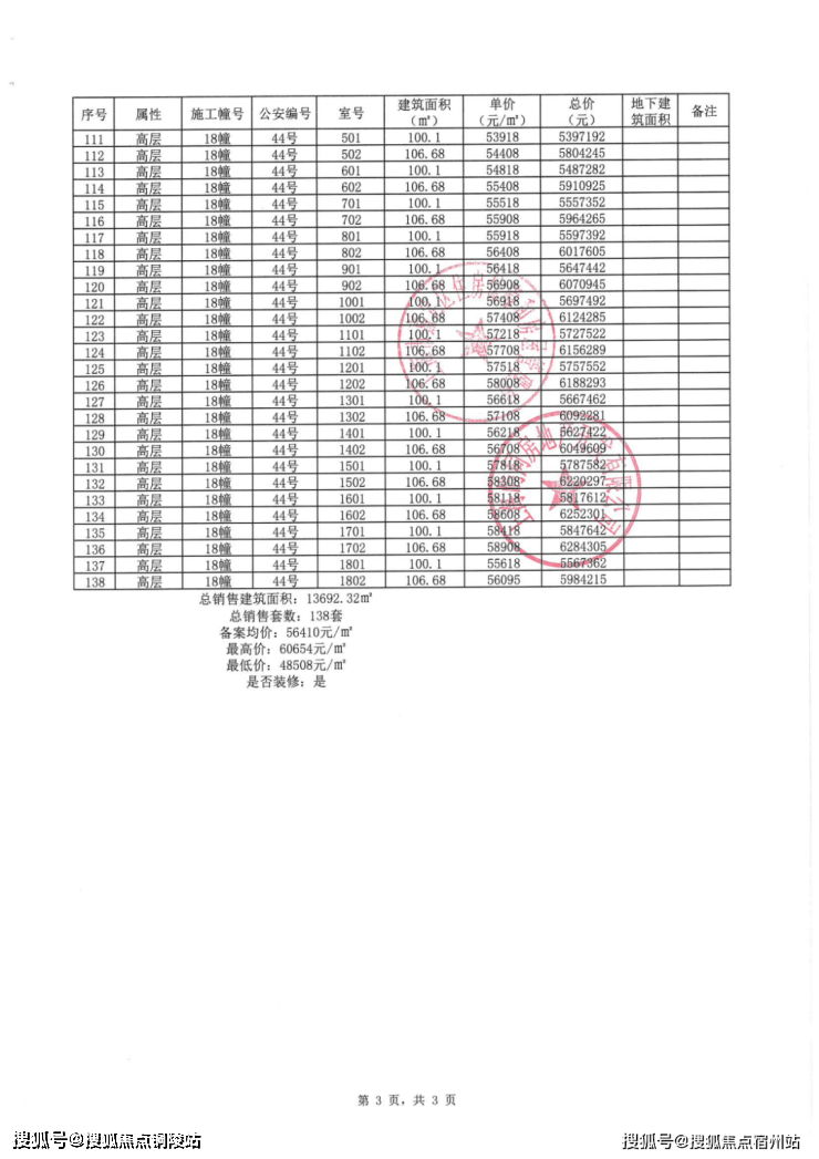 一房一价表: