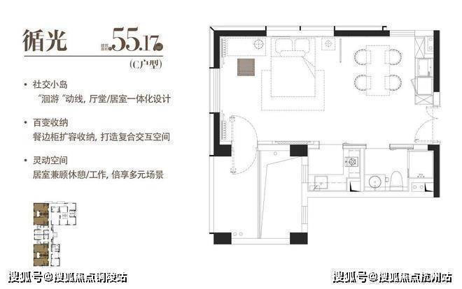A|循光|建面约55.17m²|一室一厅一厨一卫