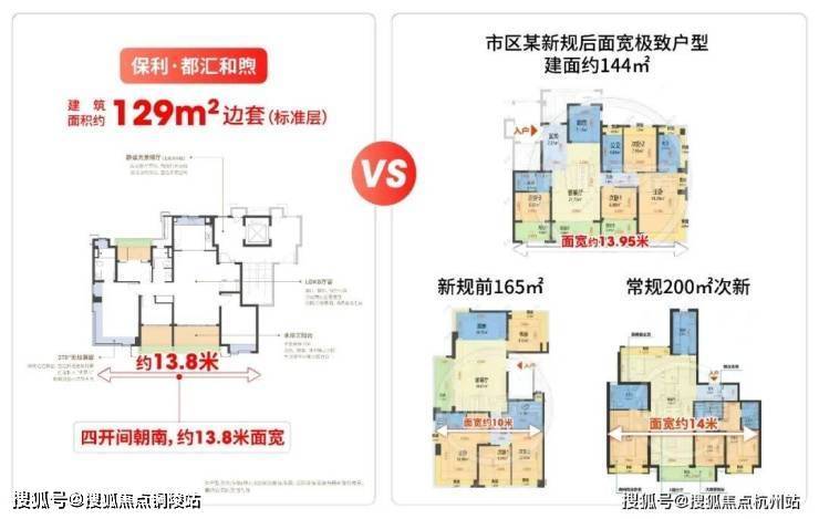 这一尺度不仅远超联排叠墅,在新房市场也处于第一梯队——即便是市中心面宽极致的144㎡户型,面宽也仅约13.95米,而项目以129㎡建面实现相当面宽,甚至超过不少165-200㎡的二手房与新规前产品。