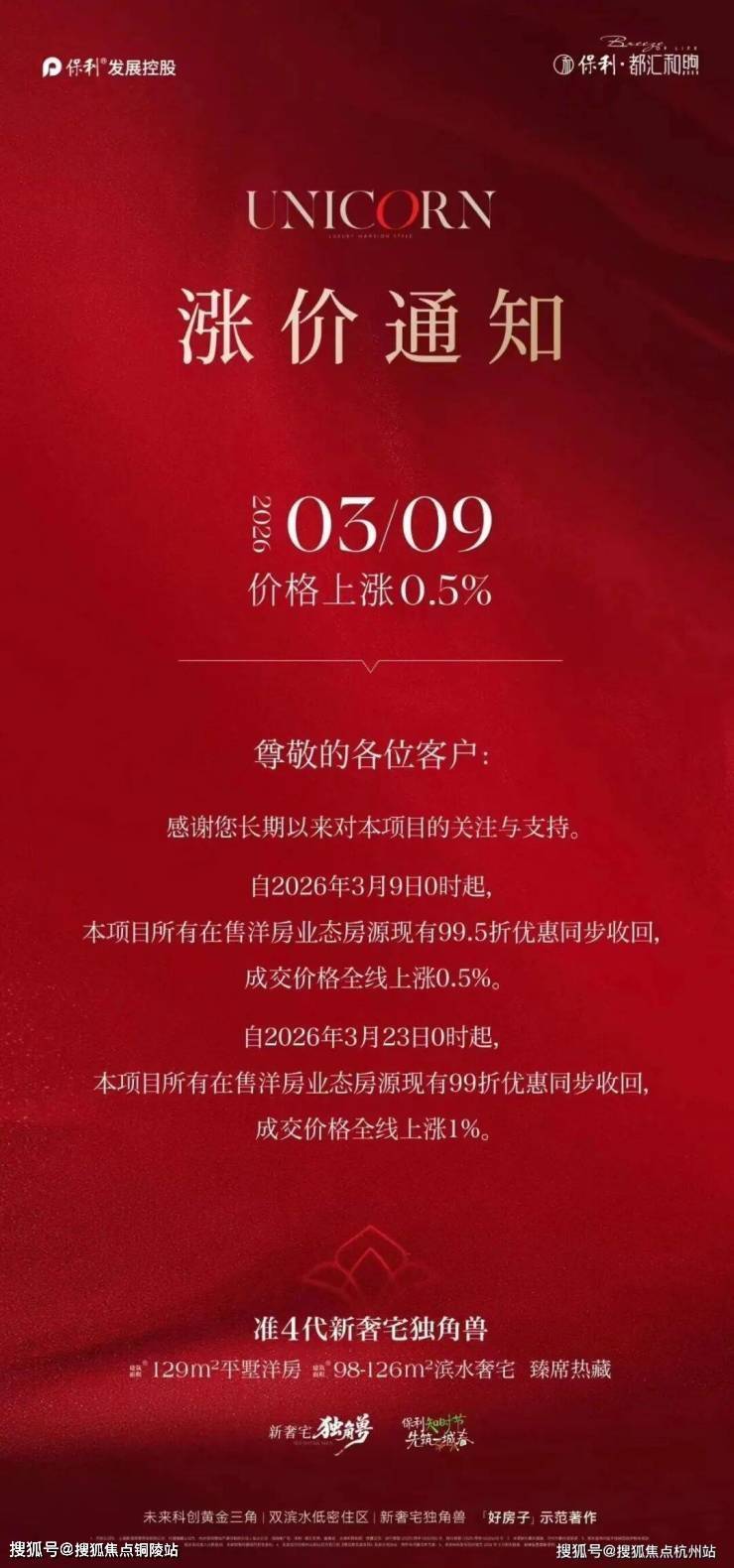 根据爆出的通知显示,本次涨价内容为,“收回在售洋房房源99.5折优惠,成交价全线上涨0.5%”。
