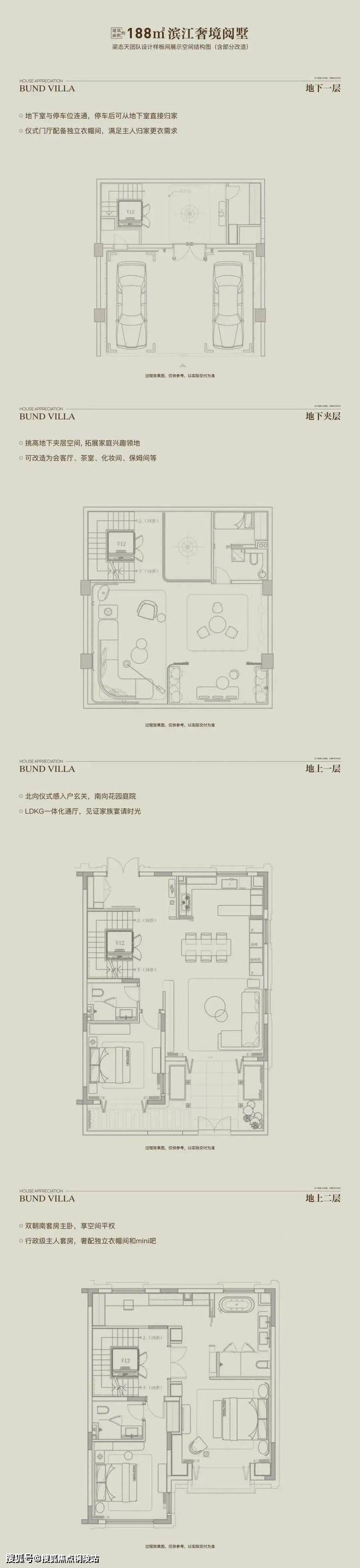 以“全两层+会所”的形态革新、花园露台地下室的全维空间、大面宽短进深的奢适格局,重构别墅生活场景。