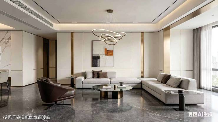 项目立面设计堪称点睛之笔:以现代简约的森系造型为形,香槟金的流动曲线为韵,厚重石材的品格为骨,珐琅的历史印记为魂。