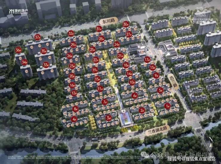 洋房分布在东西两侧,东侧洋房可俯瞰黄浦江江景及滨水绿地,西侧洋房可览兰香湖湖景。