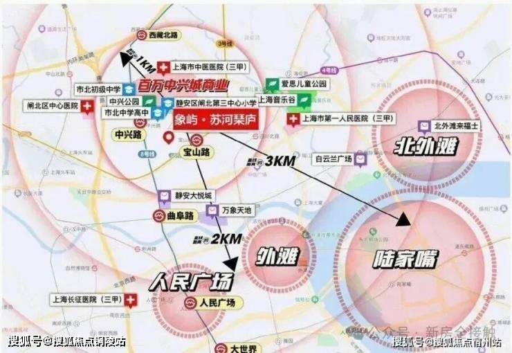 很多自媒体喜欢把象屿·苏河琹庐简单归类为“苏河湾板块”,这没错,但并不完全准确。我的观点是:它正好处在一个“黄金三角”的物理中心和心理原点。