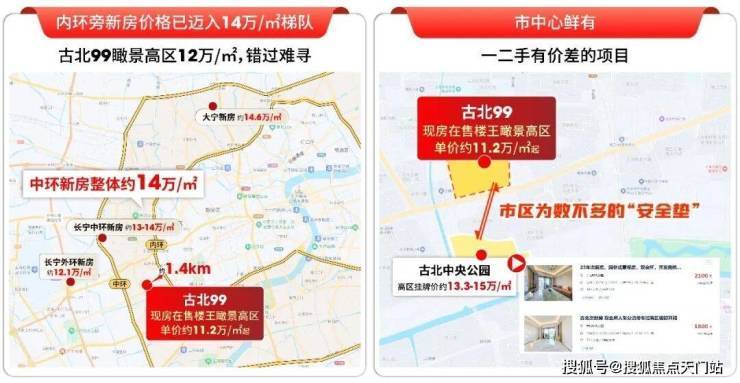 与二手房相比,一街之隔的古北中央公园高区挂牌价13.3-15万/㎡,项目是市中心罕见新房与次新存在价差的楼盘。