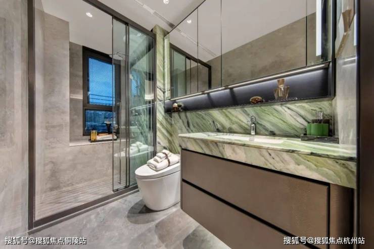 交付标准上,项目不仅品牌配置极高,比如标配德国AEG品牌厨具四件套,而且将拼花和石材工艺融入其中,整体呈现的室内高定品质,对标上海10万+的豪宅也不为过。