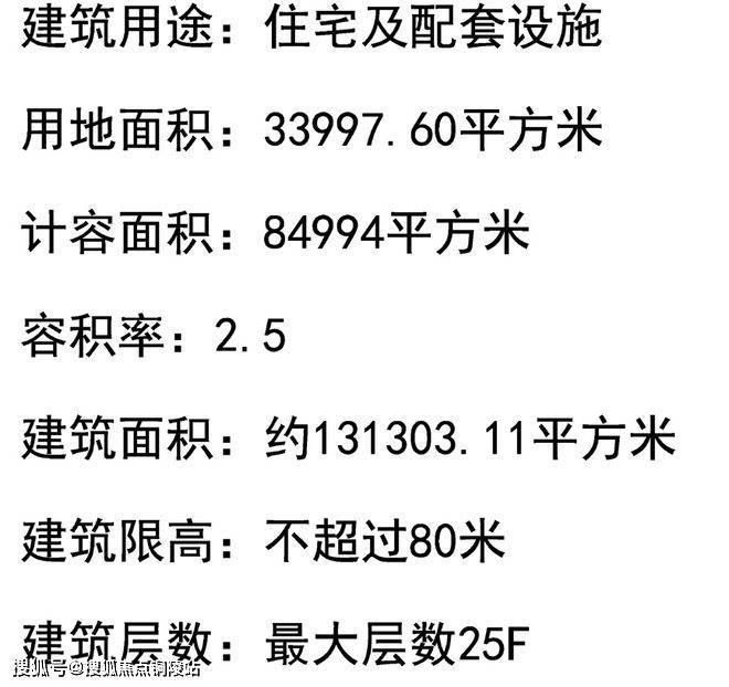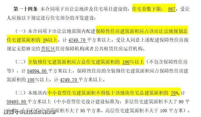地块用地性质为普通商品房,容积率约2.5,限高80米,住宅套数下限867套,需配建5%以上保障性住房,中小套户型不得低于70%,全装修比例100%!