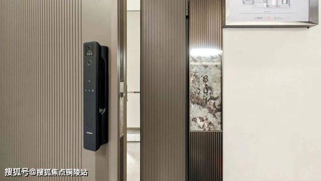 尚未入户,自带猫眼的四合一智能门锁,配合定制的门牌号与logo集合而成的入户门,彰显着主人的品位与尊贵地位。