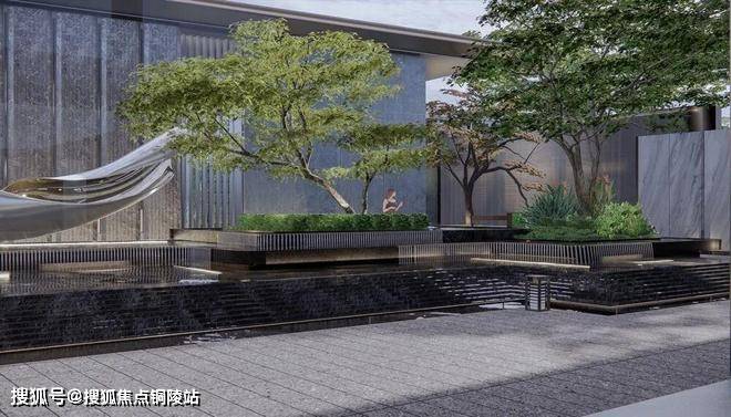 第五重:下沉庭院打造一体式景观,墙面流水至地面,结合水中花池营造出纯粹的自然之境。