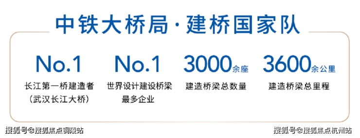 中铁大桥局集团前身为1953年修建万里长江第一桥“武汉长江大桥”经政务院批准成立的铁道部大桥局,是中国桥梁事业的领军者,是世界上设计桥梁最多的企业,中国“一带一路”走向世界的“建桥国家队”。在世界范围内建造桥梁总数超过3000座,建造桥梁总里程超过3600余公里,建桥技术国际领先。近70年来,公司曾先后参与建设了杭州湾跨海大桥、东海大桥、港珠澳大桥、武汉长江大桥、南京长江大桥等一系列知名桥梁,一直引领着中国桥梁事业发展方向,以建桥的心志去建造住宅。