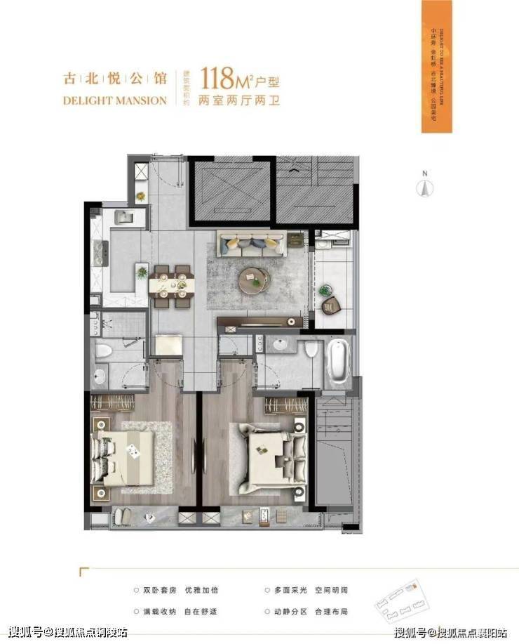 (三)建面约 118㎡两室两厅两卫:改善标杆,奢阔尺度
