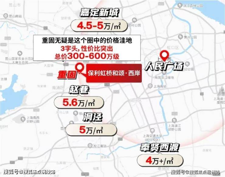 若以市中心为圆心,重固与赵巷、洞泾处于同一半径范围内,但后者房价已达5-5.6万/㎡, 而重固仅3字头 。