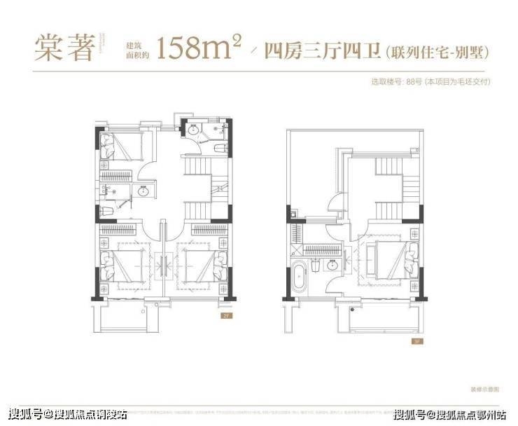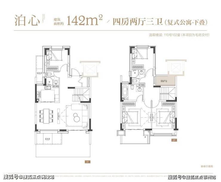叠墅:叠墅一共四层,分为上/下叠,上叠建筑面积约139㎡,下叠建筑面积约142㎡。
