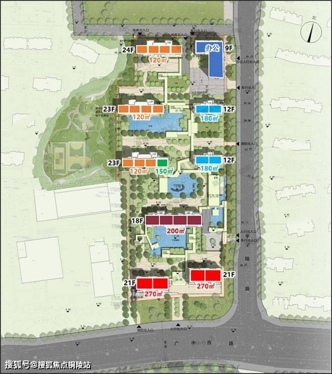 根据项目规划设计方案:项目拟建8栋12-24层高层住宅,以及1幢总高22F的办公楼,总规划446户。