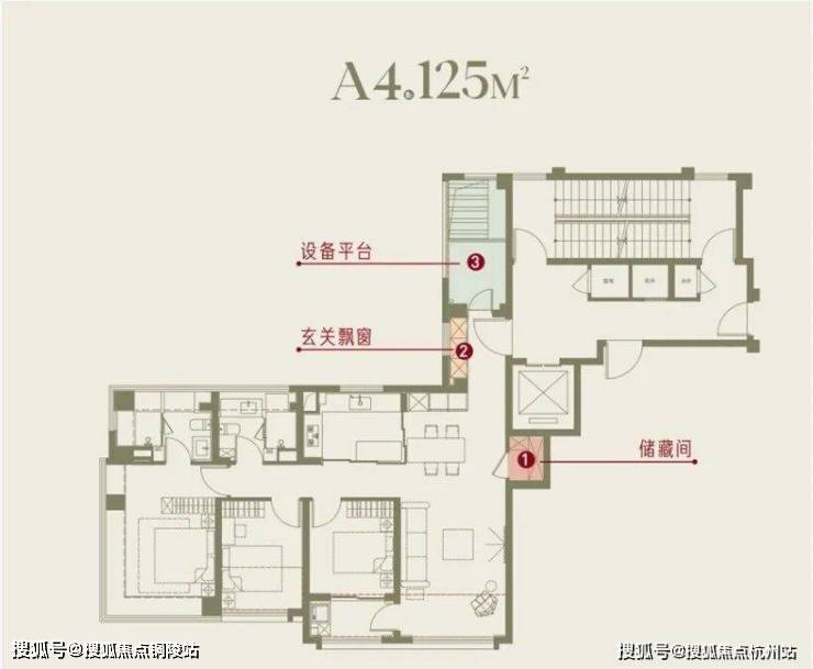 125边套户型:超越所有市面上的120平户型!需求改善产品必看项目!南向面宽达13.4m,四开间朝南,全卧超南。实得率超95%,多了20平空间,三阳台,满飘窗,设备平台,主卧室270°套间设计。层高3.15米。这个户型对比样板房,储藏间更大了,玄关收纳空间更大,收纳空间更多。