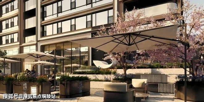 其中高层外立面昭示性十足!采用仿红砖陶板、优美柔和的设计元素、白色石材窗板以及古铜色金属线条设计,实现海派复古与现代建筑美学碰撞的艺术,颜值满分!